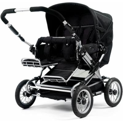 Brio Double Wave je robustní kočárek pro dvojčata či věkově blízké sourozence. Konstrukce s velkými neotočnými nafukovacími (nebo volitelnými pěnovými) koly je navíc odpružená vahadly, takže měkce houpe a hladce projde i těžkým terénem. Dvě rovnocenná sedadla jsou na konstrukci nasazena napevno v protisměru, jejich směrování však můžeš změnit přehozením rukojeti. Jsou dobře polstrována a dají se polohovat až do lehu, jsou tak vhodná již od narození - ideálně s dodávanými měkkými vložným taškami.