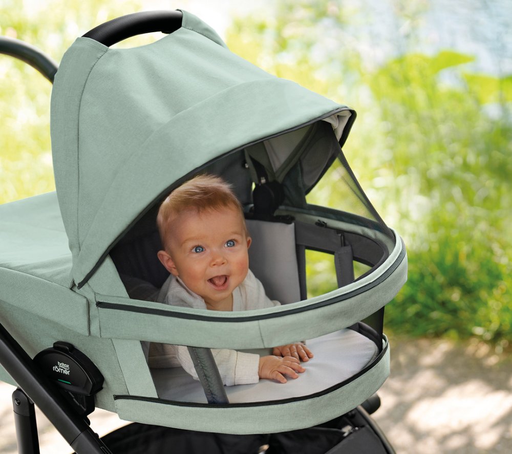 - voděodolná látka se zabudováním UPF 50+ ochranným faktorem, která ochrání miminko i v pochmurném počasí.