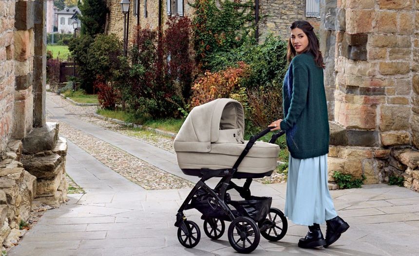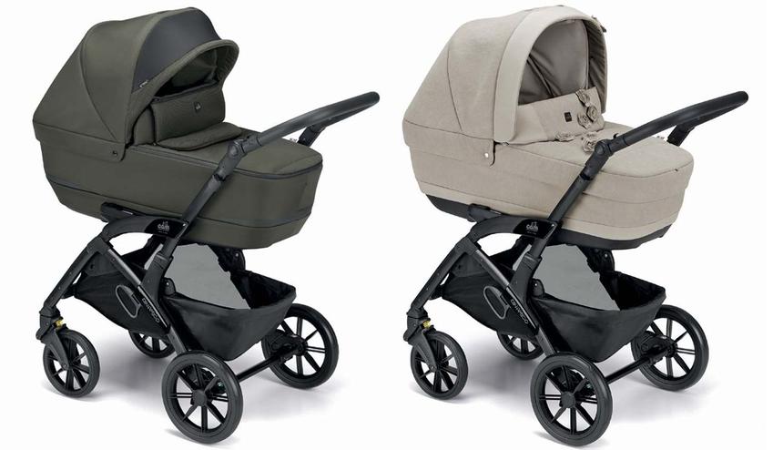 - pomocí madla lze korbu jednoduše vyjmout nebo nasadit na konstrukci kočárku,