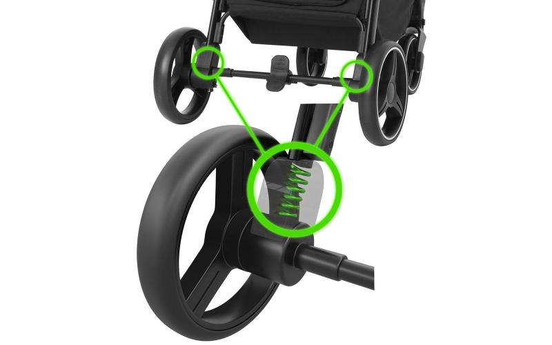 - nízká hmotnost 9,7 kg a odolná konstrukce zvládá procházky v městském terénu,