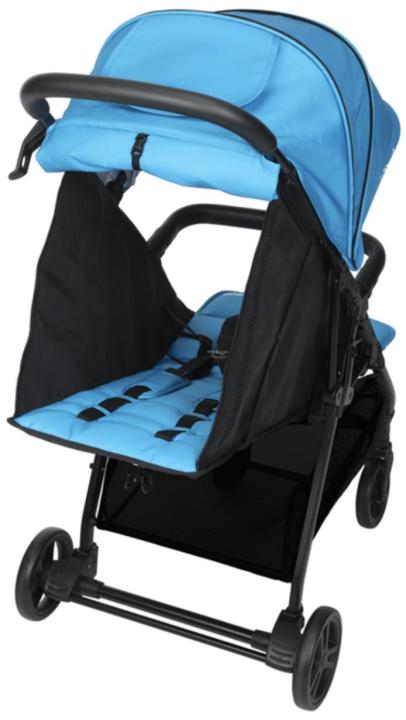 kolečka otočná s možností fixace • • velmi lehký • složení jednou rukou • hmotnost kočárku 5.5 kg • nosnost sedačky 15 kg • šířka kočárku 51 cm