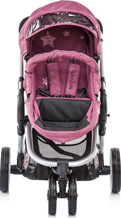 Chipolino Ferrara je trojkolový kombinovaný kočárek se sedadlem typu 2v1, které dokážeš jednoduchým rozepnutím popruhů přestavět na hlubokou korbu. Samostatné sedadlo je korýtkové, polohovatelné jak celkovým nakloněním, tak i pásem v zadní části. Individuálně se dá přizpůsobit i opěrka nohou. Konstrukce originálního tvaru je v zadní části měkce odpružená a díky přednímu dvojkolečku jednoduše manévrovatelná i přesto, že je poměrně široká. Do prostorného nákupního košíku se dostaneš nejen ze zadní části, ale po odzipování i zepředu. Na konstrukci se dá připojit i samostatně dokoupitelná autosedačka Ferrera, a to bez potřeby jakýchkoli adaptérů.