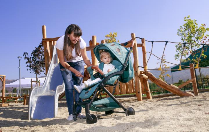 kolečka pěnová (otočná s možností fixace) • téměř úplný rovný leh (165°) • velmi lehký • velmi skladný • velký úložný prostor • možnost připojení autosedačky • hmotnost kočárku 8.2 kg • nosnost sedačky 15 kg • šířka kočárku 64 cm