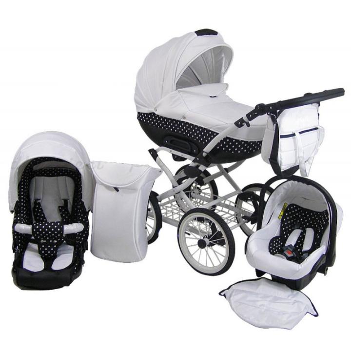 Cleo Rita Retro je elegantní, cenově dostupný kombinovaný kočárek v retro stylu. Je totožný s bratrským, jemně vzorovaným modelem Rita Lux, na rozdíl od něhož má Rita Retro minimalističtější barevnost a vzorování ve spodní plastové části hluboké vaničky. Ocelová konstrukce s velkými nafukovacími koly a měkkým vahadlovým odpružením zvládne nejen projít náročným terénem, ale i pohoupat děťátko v kočárku. Její barvu si můžeš vybrat z černé nebo bílé - barva rámu se odrazí i na barvě kol. Všechny nástavby lze na konstrukci nasadit v obou směrech jízdy; dají se také snadno odejmout pomocí paměťových tlačítek. V trojkombinaci najdeš kromě prostorné polohovací vaničky i do lehu polohovatelné sedadlo, autosedačku s adaptéry a bohatou základní výbavu.