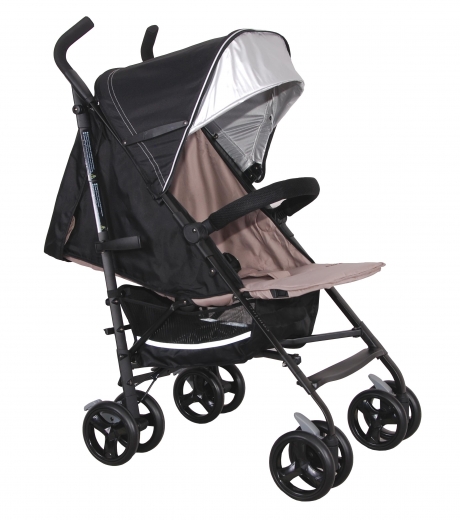 kolečka pěnová (otočná s možností fixace) • vhodný pro nízké rodiče • • velmi lehký • zadní kolečka ⌀16 cm • hmotnost kočárku 5.9 kg • nosnost sedačky 15 kg • šířka kočárku 47 cm