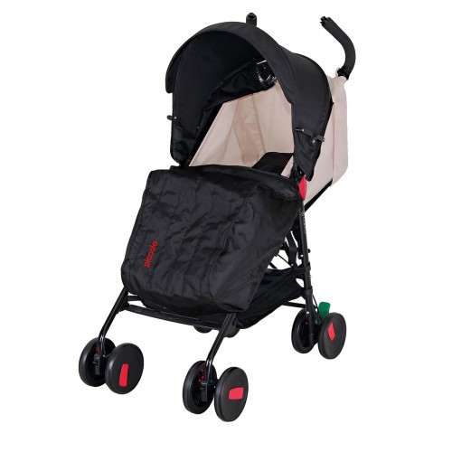 Coletto Piccolo je městský golfový kočárek s nánožníkem ve výbavě. I přes hluboký leh je vhodnější spíše pro starší děti, a to kvůli menší opoře a slabšímu polstrování sedadla. Pro golfový kočárek je netypickou brzda aktivovaná stisknutím na červené straně a uvolněná stlačením na opačné zelené straně. Složíš ho úsporněji - teleskopicky.