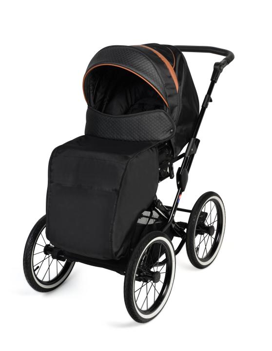 kolečka nafukovací (fixné) • vhodný pro vysoké rodiče • téměř úplný rovný leh (165°) • otočná sedačka • velká vanička • prostorná sedačka • možnost připojení autosedačky • zadní kolečka ⌀35.5 cm • hmotnost kočárku 15 kg • nosnost sedačky 15 kg • šířka kočárku 60 cm
