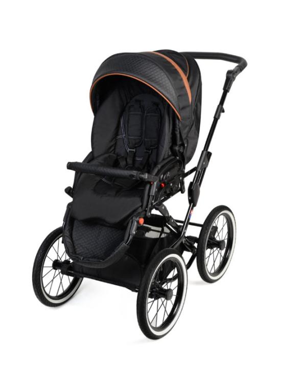 kolečka nafukovací (fixné) • vhodný pro vysoké rodiče • téměř úplný rovný leh (165°) • otočná sedačka • velká vanička • prostorná sedačka • možnost připojení autosedačky • zadní kolečka ⌀35.5 cm • hmotnost kočárku 15 kg • nosnost sedačky 15 kg • šířka kočárku 60 cm