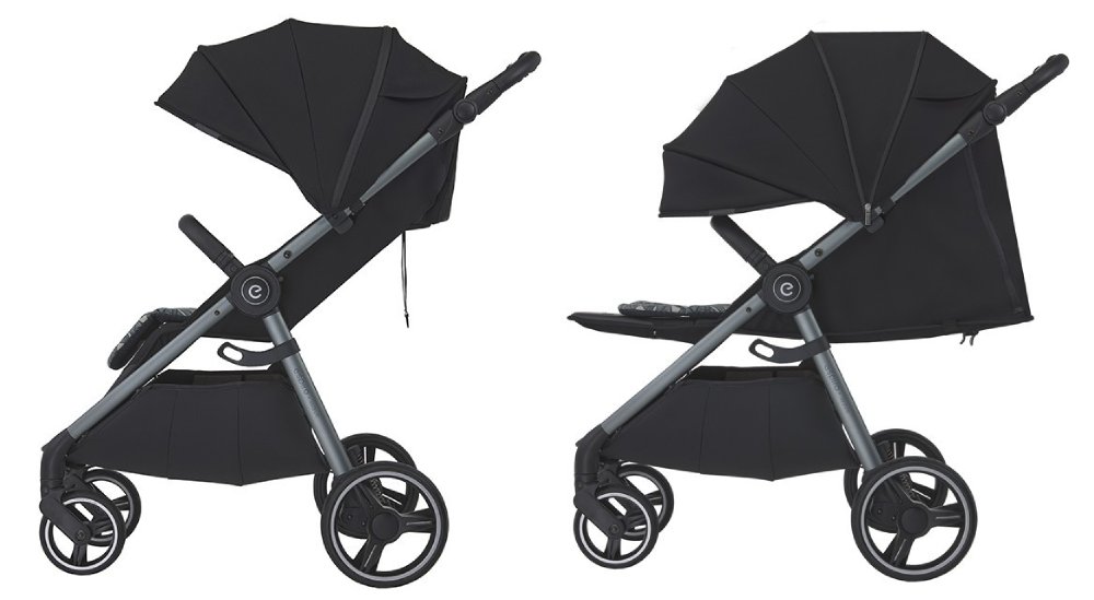 kolečka otočná s možností fixace • téměř úplný rovný leh (165°) • Zádová opěrka jde polohovat do kolmého sedu (90°) • otočná sedačka • prostorná sedačka • velmi lehký • velmi skladný • složení jednou rukou • skládací vanička • možnost připojení autosedačky • zadní kolečka ⌀21 cm • hmotnost kočárku 8.6 kg • nosnost sedačky 22 kg • šířka kočárku 45 cm