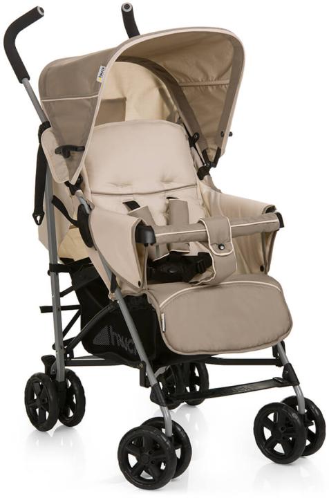 Hauck Sprint je golfový kočárek s vysokou nosností. Polstrované sedadlo můžeš polohovat až do lehu. Netypicky jsou polstrované i bočnice, takže kočárek připomíná křeslo. Pro menší děti můžeš kočárek využít i s měkkou vložnou taškou. Jednoduše snímatelná kolečka umožní Sprint vměstnat i do malých kufrů aut. Víceleté modely látkové boky neměly, poznáš je také podle plastové rukojeti a tvrdých plastových koleček.