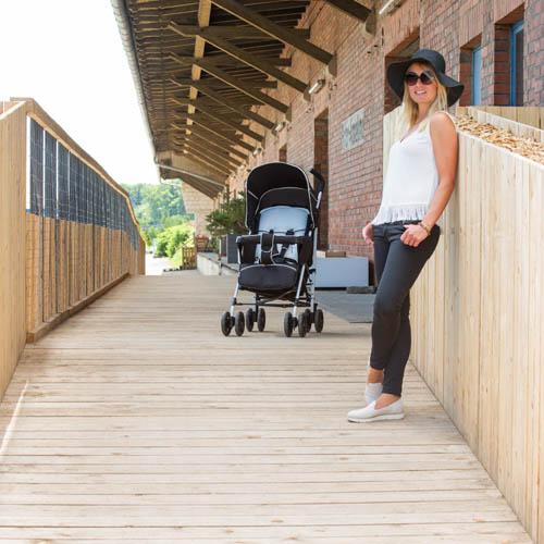 kolečka pěnová (otočná s možností fixace) • vhodný pro vysoké rodiče • téměř úplný rovný leh (165°) • velmi lehký • zadní kolečka ⌀14.5 cm • hmotnost kočárku 8.8 kg • nosnost sedačky 15 kg • šířka kočárku 51 cm