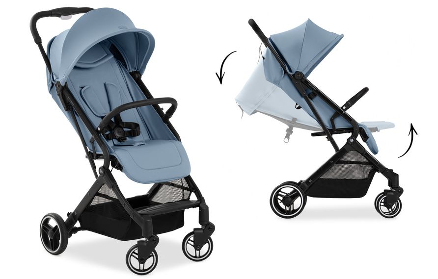 kolečka otočná s možností fixace • úplný rovný leh (180°) • velmi lehký • velmi skladný • složení jednou rukou • skládací vanička • možnost připojení autosedačky • zadní kolečka ⌀17.8 cm • hmotnost kočárku 8.3 kg • nosnost sedačky 22 kg • šířka kočárku 44 cm