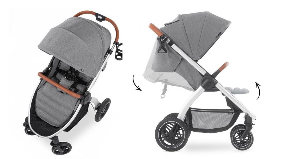 kolečka pěnová (otočná s možností fixace) • téměř úplný rovný leh (165°) • velký úložný prostor • složení jednou rukou • zadní kolečka ⌀17 cm • hmotnost kočárku 9.5 kg • nosnost sedačky 15 kg • šířka kočárku 52 cm