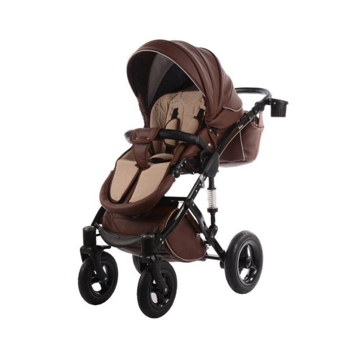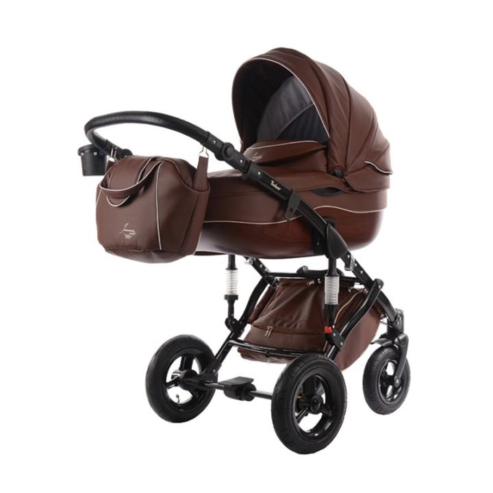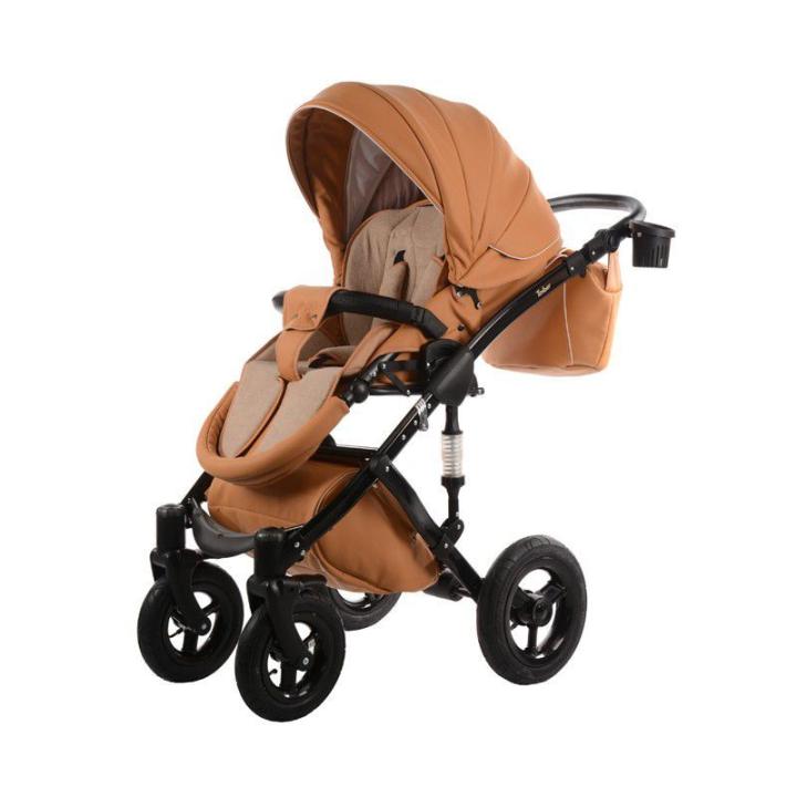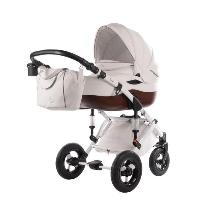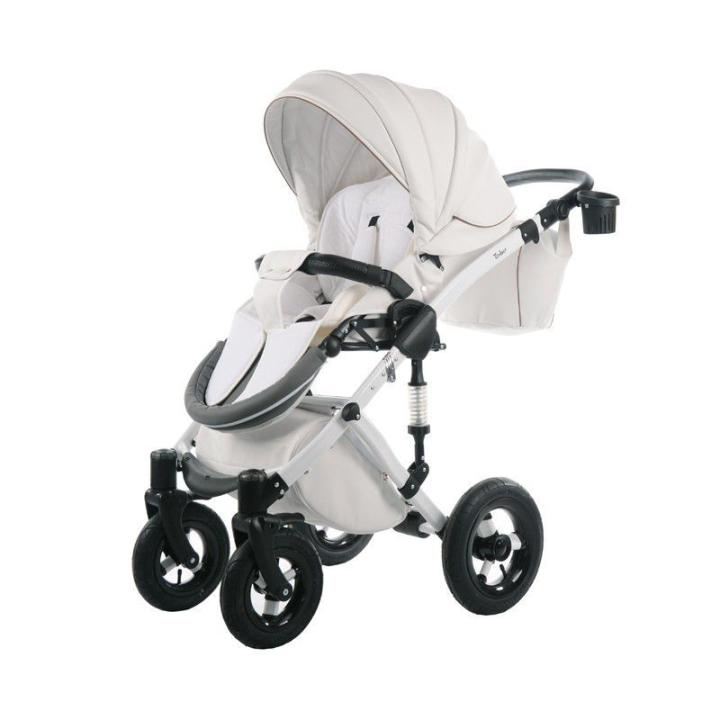 Konstrukce kočárku je robustní a pro hladkou jízdu každým terénem i dvojnásobně odpružená. Vybavená je koly s pneumatikami plněnými gelem, která vlastnostmi připomínají kola nafukovací, ale nehrozí jim defekt. Hlubokou vaničku i sportovní sedadlo můžeš díky klik systému nasadit na konstrukci v jakémkoli směru. Matrace ve vaničce se dá pro starší anebo refluxem trpící miminko v zádové části zvednout. Výhodou nánožníku vaničky je zipová pojistka proti pádu na zem, takže i když ho miminko skopne, nezašpiní se. Část stříšky jak hluboké, tak i sportovní části, lze odejmout, odhaluje prodyšnou síťovanou letní verzi. Sedadlo lze polohovat až do lehu, jeho součástí je podložka, která díky zipovému upínání nesklouzne. Ke kočárku náleží i kompletní základní výbava v ceně - nánožníky, pláštěnka, přebalovací taška i držák na nápoje. Volitelně si k dvojkombinaci můžeš dokoupit adaptéry s autosedačkou vlastní nebo jiných, známějších značek.