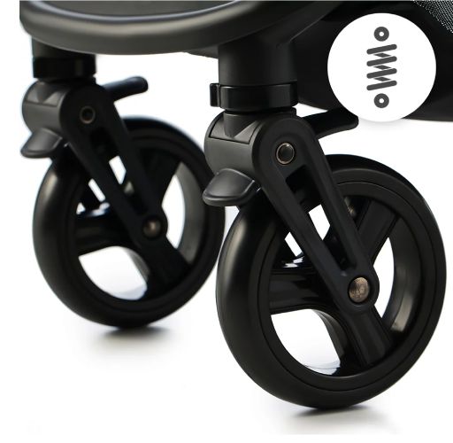 kolečka otočná s možností fixace • vhodný pro vysoké rodiče • téměř úplný rovný leh (165°) • otočná sedačka • velká vanička • velmi lehký • velký úložný prostor • složení jednou rukou • skládací vanička • možnost připojení autosedačky • zadní kolečka ⌀24.5 cm • hmotnost kočárku 10 kg • nosnost sedačky 22 kg • šířka kočárku 57 cm
