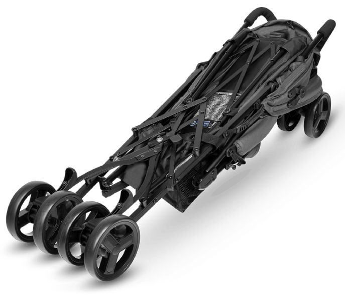 - sklápění zádové opěrky pomocí páček umístěných na boku kočárku,