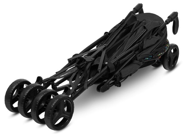 kolečka pěnová (otočná s možností fixace) • téměř úplný rovný leh (165°) • velmi lehký • složení jednou rukou • zadní kolečka ⌀14 cm • hmotnost kočárku 7.2 kg • nosnost sedačky 15 kg • šířka kočárku 46.5 cm