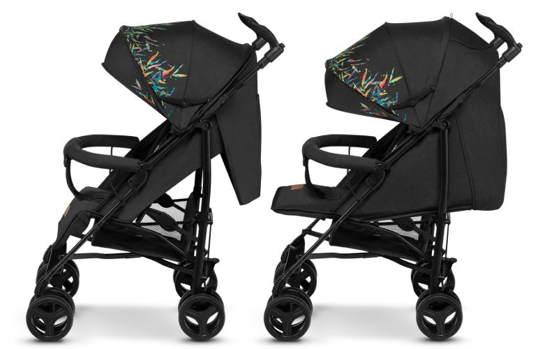 kolečka pěnová (otočná s možností fixace) • téměř úplný rovný leh (165°) • velmi lehký • složení jednou rukou • zadní kolečka ⌀14 cm • hmotnost kočárku 5.6 kg • nosnost sedačky 15 kg • šířka kočárku 46 cm