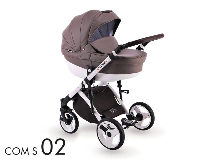 kolečka nenafukovací s výplní (otočná s možností fixace) • vhodný pro vysoké rodiče • téměř úplný rovný leh (165°) • otočná sedačka • velká vanička • prostorná sedačka • skládací vanička • možnost připojení autosedačky • zadní kolečka ⌀30 cm • hmotnost kočárku 14 kg • nosnost sedačky 15 kg • šířka kočárku 61 cm