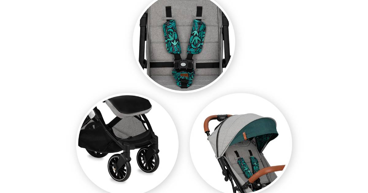 kolečka otočná s možností fixace • téměř úplný rovný leh (165°) • Zádová opěrka jde polohovat do kolmého sedu (90°) • otočná sedačka • prostorná sedačka • velmi lehký • velmi skladný • velký úložný prostor • složení jednou rukou • skládací vanička • možnost připojení autosedačky • zadní kolečka ⌀21 cm • hmotnost kočárku 8.84 kg • nosnost sedačky 22 kg • šířka kočárku 46.5 cm