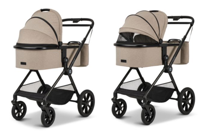 - lze měnit výšku hluboké vaničky na konstrukci kočárku pomocí výškových adaptérů – níže na konstrukci se nasazuje bez adaptérů a výše s nimi,