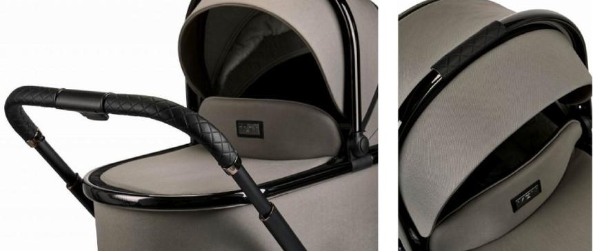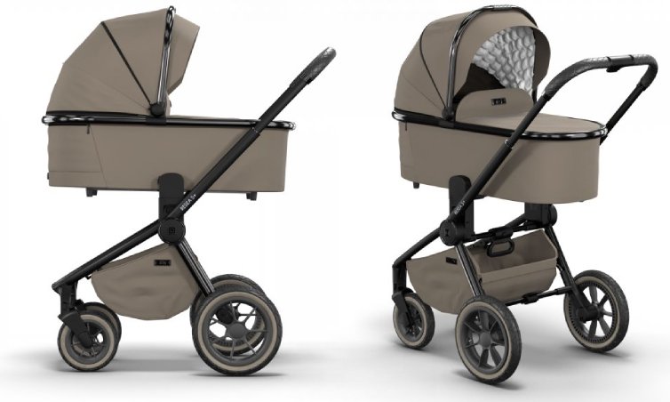- lze měnit výšku hluboké korby na konstrukci kočárku pomocí výškových adaptérů - níže na konstrukci se nasazuje bez adaptérů a výše s nimi,