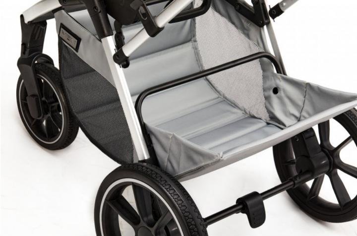 kolečka nenafukovací s výplní (otočná s možností fixace) • vhodný pro vysoké rodiče • úplný rovný leh (180°) • otočná sedačka • velká vanička • prostorná sedačka • velmi skladný • velký úložný prostor • složení jednou rukou • skládací vanička • možnost připojení autosedačky • zadní kolečka ⌀29.5 cm • hmotnost kočárku 11.5 kg • nosnost sedačky 22 kg • šířka kočárku 57 cm