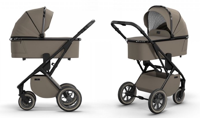 - lze měnit výšku hluboké korby na konstrukci kočárku pomocí výškových adaptérů - níže na konstrukci se nasazuje bez adaptérů a výše s nimi,