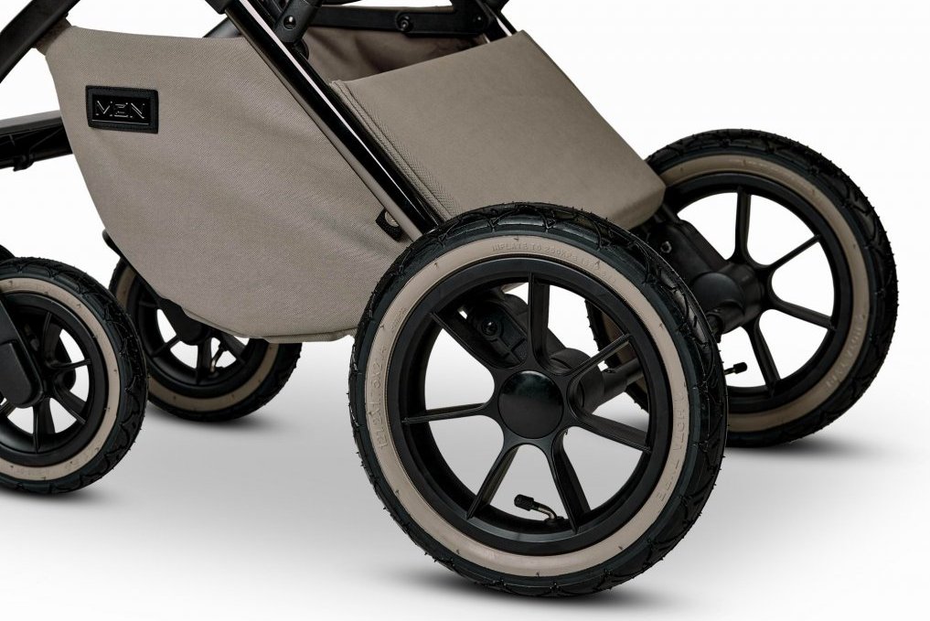kolečka nenafukovací s výplní (otočná s možností fixace) • vhodný pro vysoké rodiče • úplný rovný leh (180°) • otočná sedačka • velká vanička • prostorná sedačka • velmi skladný • velký úložný prostor • složení jednou rukou • skládací vanička • možnost připojení autosedačky • zadní kolečka ⌀29.5 cm • hmotnost kočárku 11.5 kg • nosnost sedačky 22 kg • šířka kočárku 57 cm