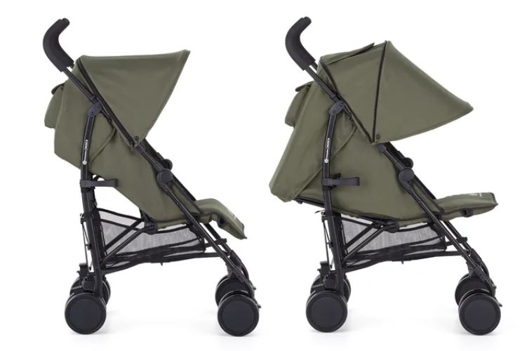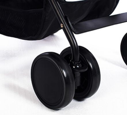 kolečka pěnová (otočná s možností fixace) • téměř úplný rovný leh (165°) • velmi lehký • složení jednou rukou • zadní kolečka ⌀14 cm • hmotnost kočárku 5.6 kg • nosnost sedačky 15 kg • šířka kočárku 46 cm