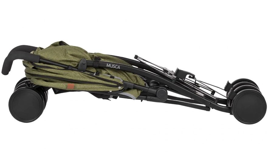Petite&Mars Musca je golfový kočárek jednoduché funkcionality pro nenáročné rodiče, kteří se často přesouvají autem či cestují nebo potřebují kompaktnější městský kočárek.