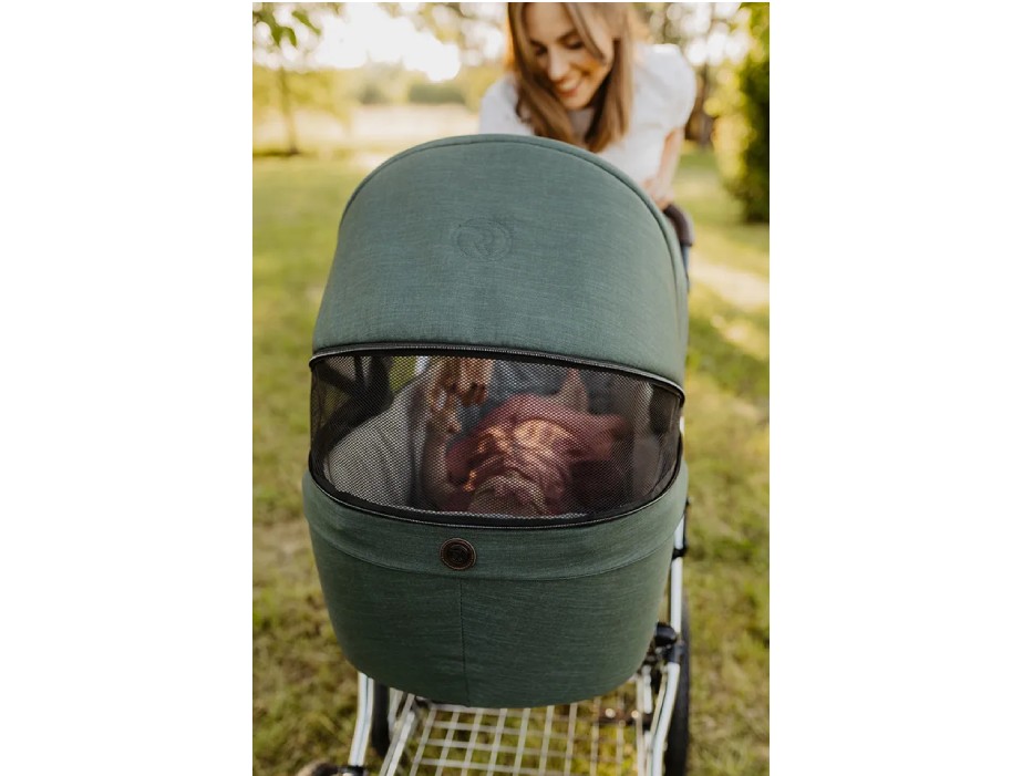 - Součástí kočárku je bohaté základní příslušenství, jako je nánožník, přebalovací taška, deka, pláštěnka a moskytiéra.