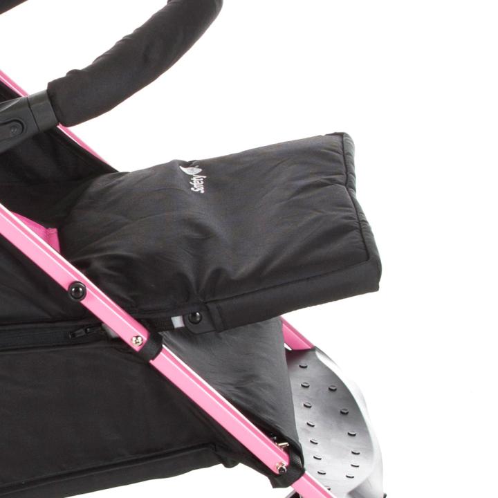 kolečka pěnová (otočná s možností fixace) • téměř úplný rovný leh (165°) • velmi lehký • zadní kolečka ⌀13 cm • hmotnost kočárku 6.5 kg • nosnost sedačky 15 kg • šířka kočárku 49 cm