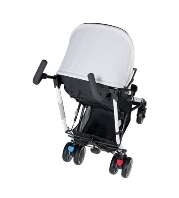 kolečka pěnová (otočná s možností fixace) • téměř úplný rovný leh (165°) • velmi lehký • zadní kolečka ⌀13 cm • hmotnost kočárku 6.5 kg • nosnost sedačky 15 kg • šířka kočárku 49 cm