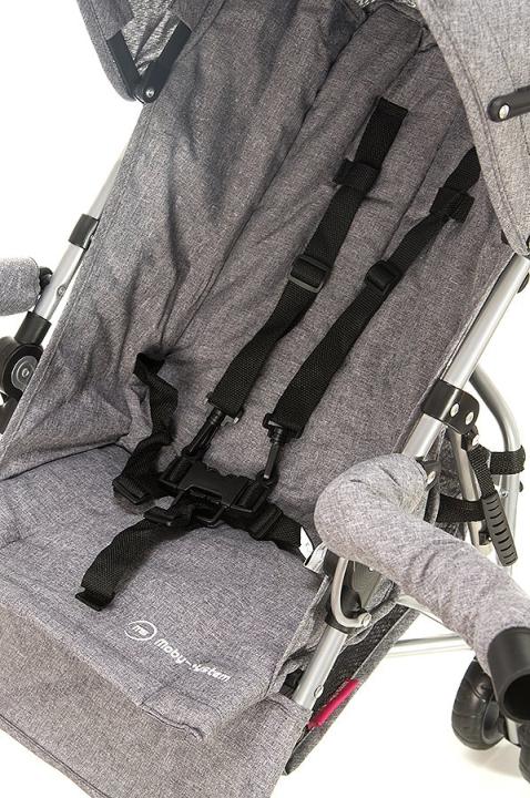 kolečka pěnová (otočná s možností fixace) • téměř úplný rovný leh (165°) • velmi lehký • zadní kolečka ⌀13 cm • hmotnost kočárku 6.5 kg • nosnost sedačky 15 kg • šířka kočárku 49 cm
