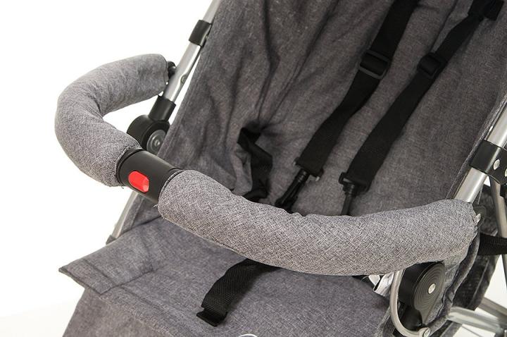 kolečka pěnová (otočná s možností fixace) • vhodný pro nízké rodiče • • velmi lehký • zadní kolečka ⌀12.7 cm • hmotnost kočárku 5.8 kg • nosnost sedačky 15 kg • šířka kočárku 45.5 cm