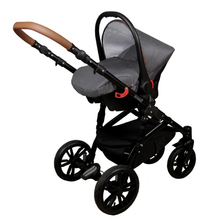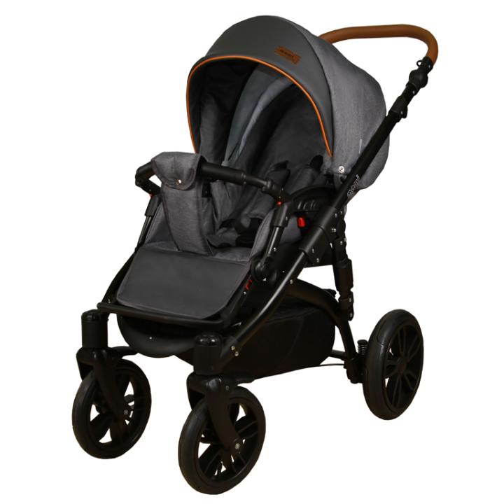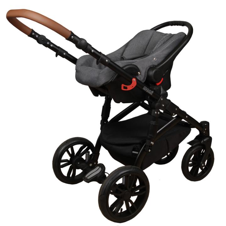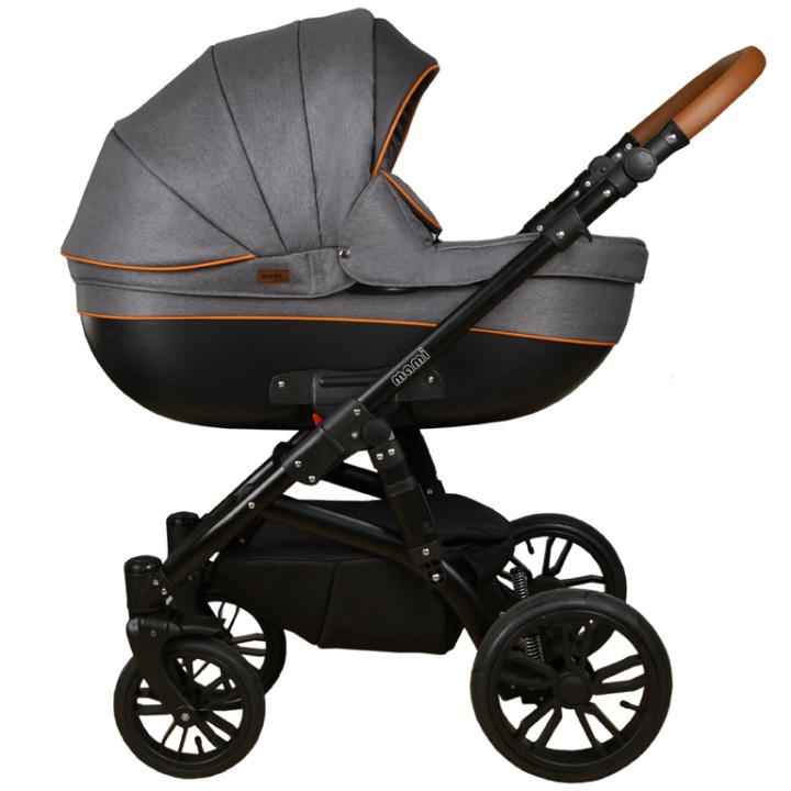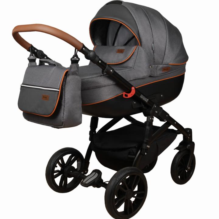 Trend Mami je kombinovaný kočárek robustnějších rozměrů v moderní, neutrální melange barevnosti s prvky koženky. Díky plně odpružené konstrukci s koly s bezúdržbovými, gelem plněnými pneumatikami s ním projedeš i náročnějším terénem. Oválná vanička s plastovou spodní částí se díky dostatku prostoru hodí i pro větší dítě a bez problémů se do ní vejde i zimní fusak. Pro starší či refluxem trpící miminko můžeš kokosovou matraci pod zády i napolohovat. Sportovní část je polohovatelná až do lehu a stejně jako vanička také otočná ve směru i v protisměru jízdy. Mami lze zakoupit v dvojkombinaci nebo v trojkombinaci s volitelnou autosedačkou. Patří k němu i přebalovací taška a nánožnky na všechny nástavby.