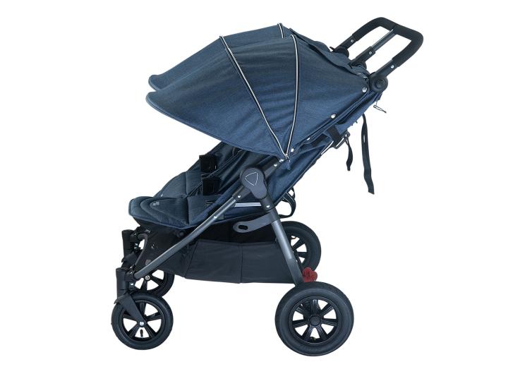 Valco Baby Neo Twin je stylový sportovní dvojkočárek s terénními nafukovacími koly. Navzdory nim je stále poměrně lehký a kompaktní, takže se výborně hodí i do města. Díky šířce 75 cm pohodlně projede každými běžnými dveřmi. Plnohodnotná neotočná sedadla můžeš individuálně polohovat do lehu dostatečně hlubokého i pro menší miminka. Kočárek tak využiješ i pro dvojčata prakticky od narození. Ke kočárku lze připojit i jedna autosedačka (Graco, Chicco anebo ty s koncovkou Maxi-Cosi) - tuto možnost cestovního systému ocení zejména rodiče věkově blízkých sourozenců.