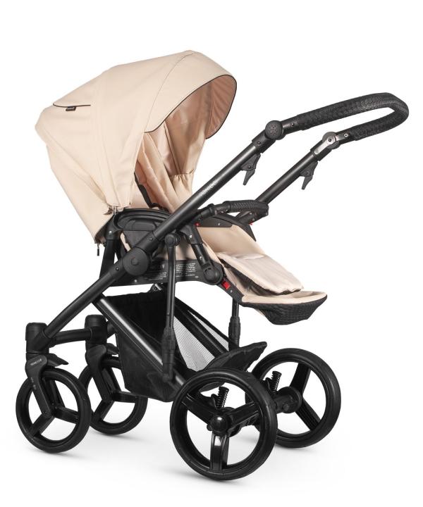 kolečka nafukovací (otočná s možností fixace) • vhodný pro vysoké rodiče • téměř úplný rovný leh (165°) • Zádová opěrka jde polohovat do kolmého sedu (90°) • otočná sedačka • velká vanička • prostorná sedačka • skládací vanička • možnost připojení autosedačky • zadní kolečka ⌀28 cm • hmotnost kočárku 13.6 kg • nosnost sedačky 15 kg • šířka kočárku 60 cm