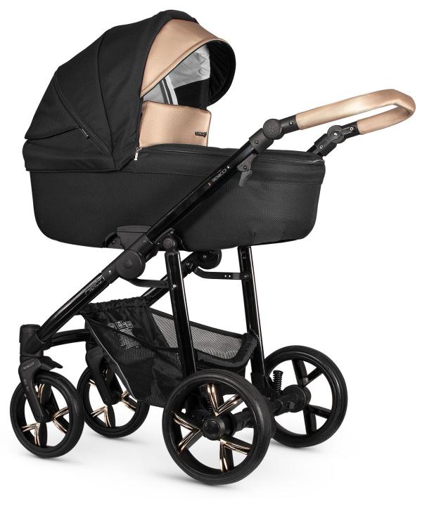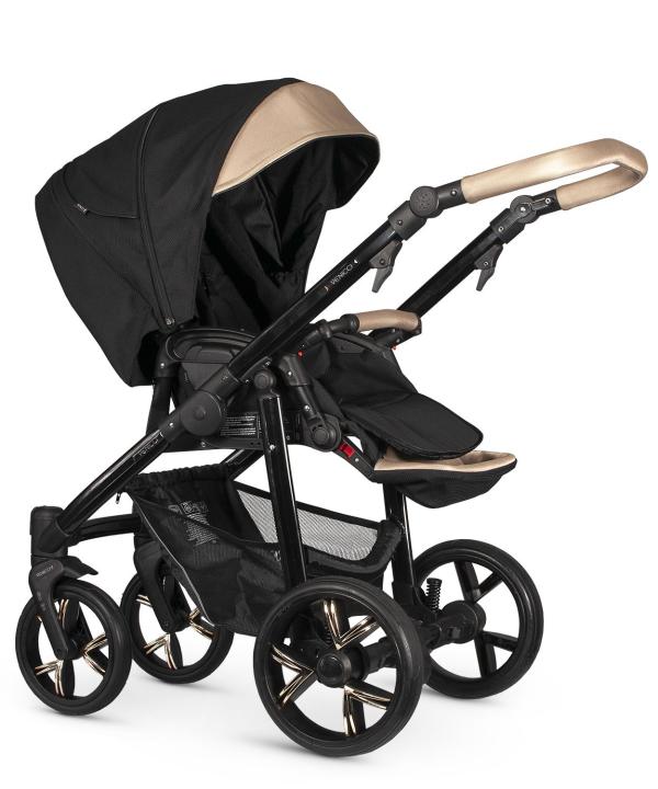 kolečka nafukovací (otočná s možností fixace) • vhodný pro vysoké rodiče • téměř úplný rovný leh (165°) • Zádová opěrka jde polohovat do kolmého sedu (90°) • otočná sedačka • velká vanička • prostorná sedačka • skládací vanička • možnost připojení autosedačky • zadní kolečka ⌀28 cm • hmotnost kočárku 13.6 kg • nosnost sedačky 15 kg • šířka kočárku 60 cm