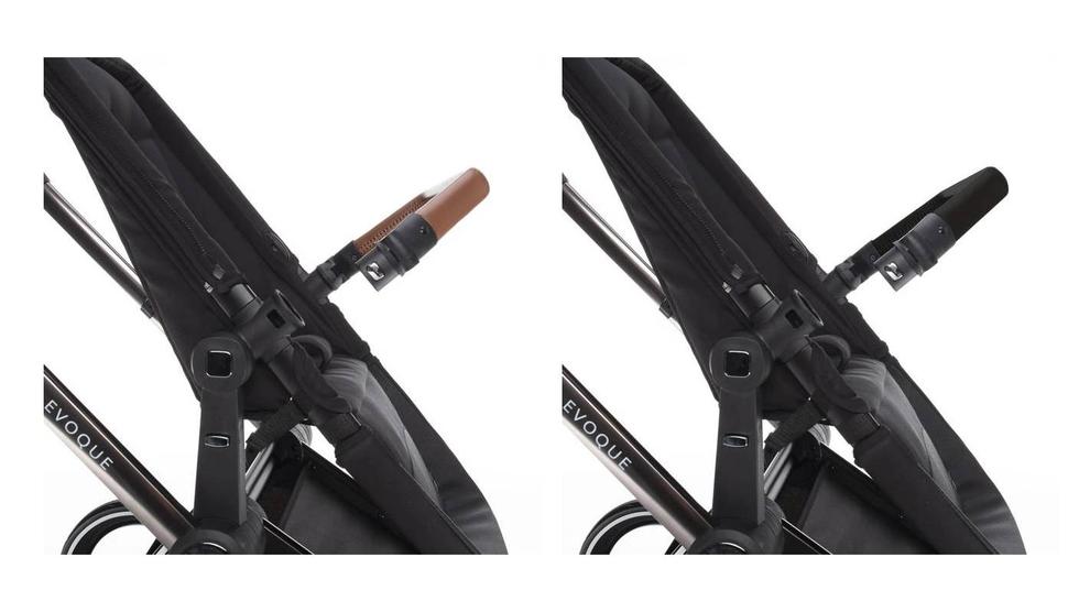 - Podvozek lze zakoupit ve dvou barvách Black a Silver, které se sladí ke dvěma designům kožené rukojeti Brown nebo Black. K podvozku je na výběr barevný set podle vlastního vkusu. Set obsahuje stříšku se zabudovanou sluneční clonou pro hlubokou korbu i sportovní sezení, nánožník hluboké korby, polstrování bezpečnostních pásů sportovního sezení, nánožník pro sportovní sezení.