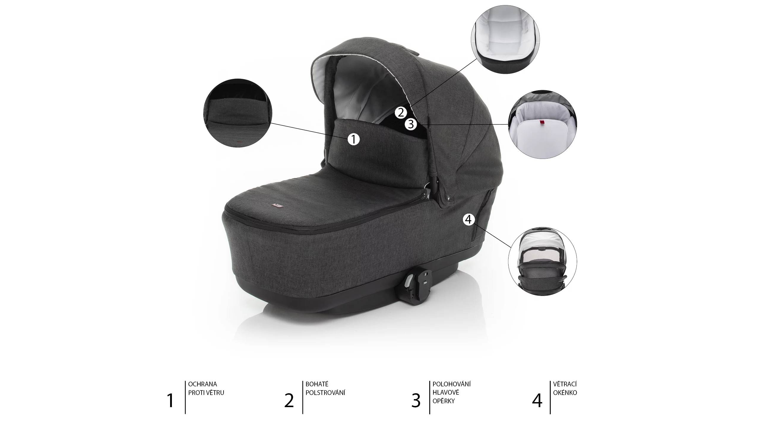 - Součástí základní výbavy kočárku jsou pláštěnka, moskytiéra, nánožník a podložka/vložka do kočárku.