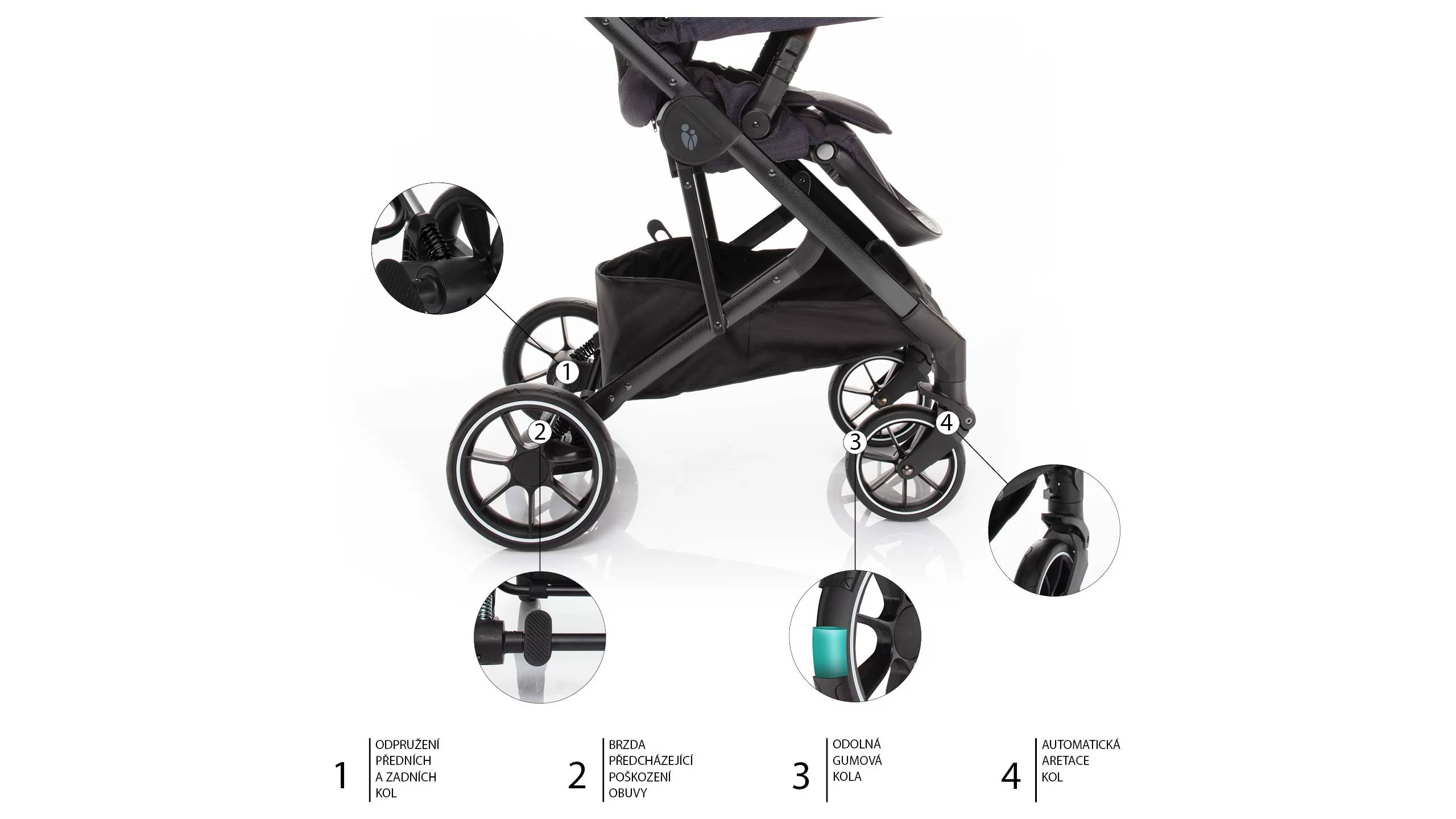 - Volitelné dokoupitelné příslušenství: skejt, držák na nápoj, fusak, taška na přebalování, adaptéry na autosedačku atp.