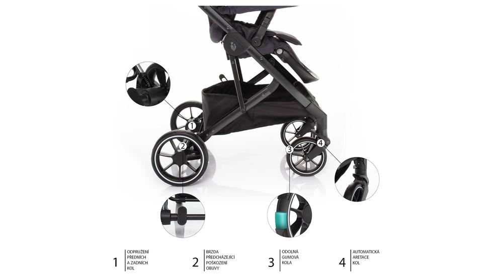 - i přes svou nízkou 11kg hmotnost se pyšní kvalitní a odolnou konstrukcí, která zvládne i procházky v lehčím terénu,