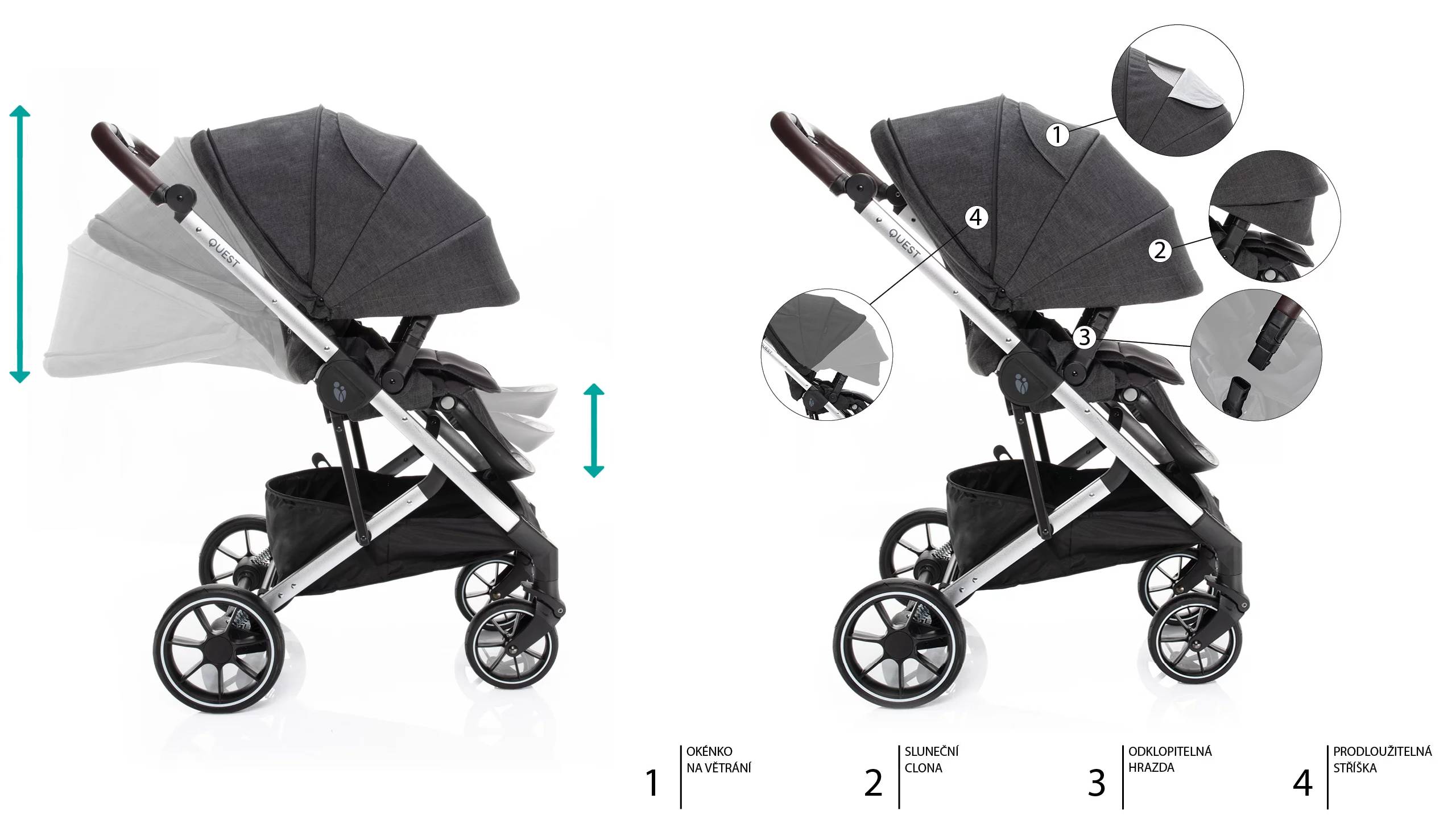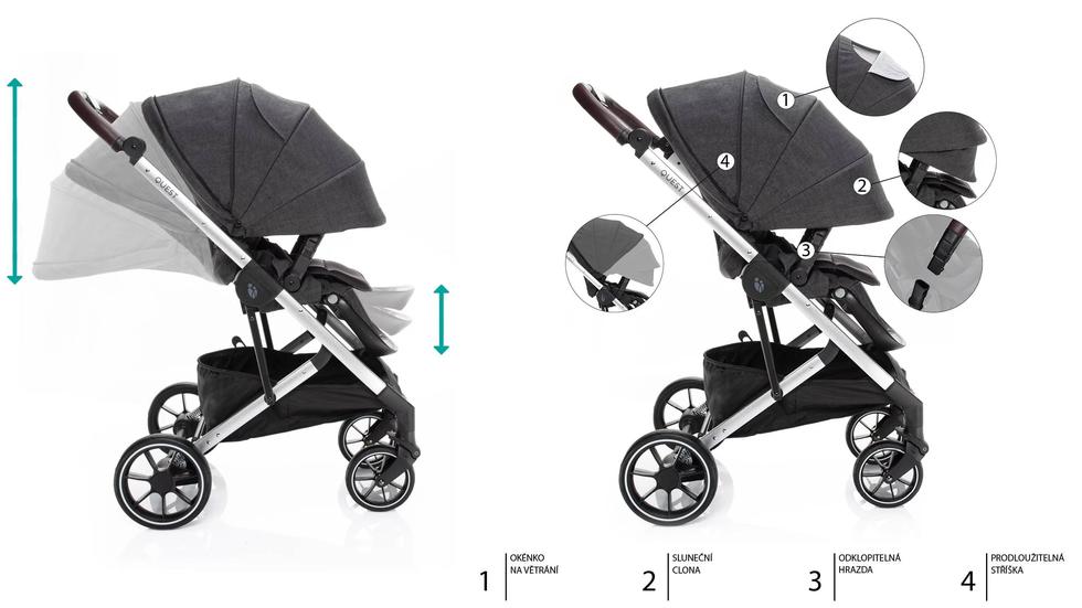 - prodlužovací XXL stříška s nehlučně uzavíratelným náhledovým okénkem s funkcí ventilace,