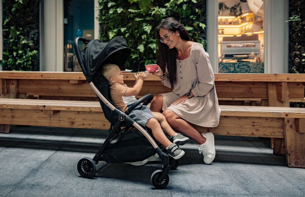 kolečka otočná s možností fixace • téměř úplný rovný leh (165°) • velmi lehký • velmi skladný • složení jednou rukou • možnost připojení autosedačky • zadní kolečka ⌀20 cm • hmotnost kočárku 8.4 kg • nosnost sedačky 22 kg • šířka kočárku 58 cm