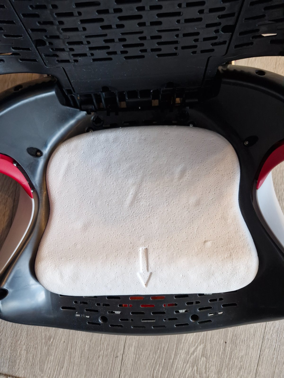 Před prodejem byla sedačka kompletně vyčištěna, potahy vyprány. Polystyrenové výplně jsou v dobrém stavu a nepopraskané. ISOFIX je plně funkční. K sedačce je návod v češtině.