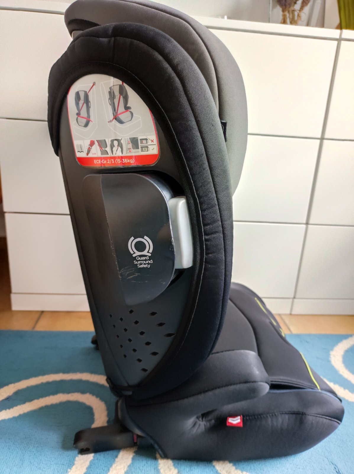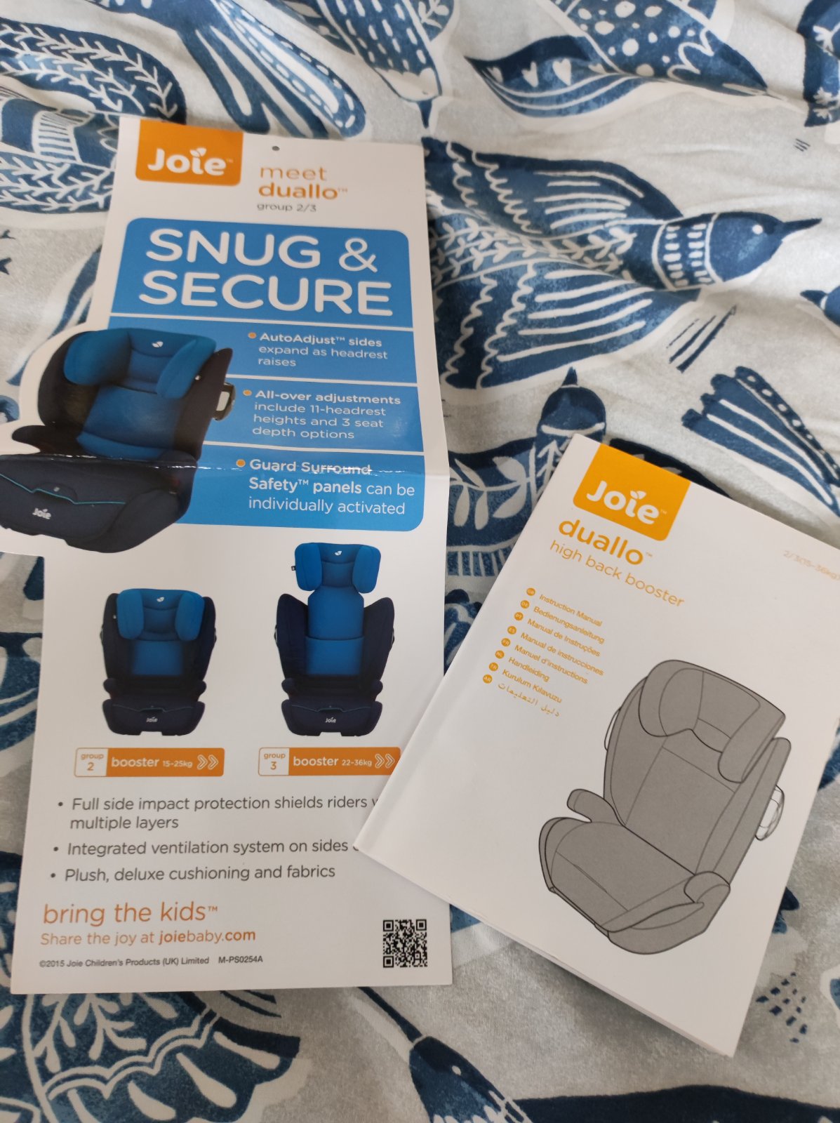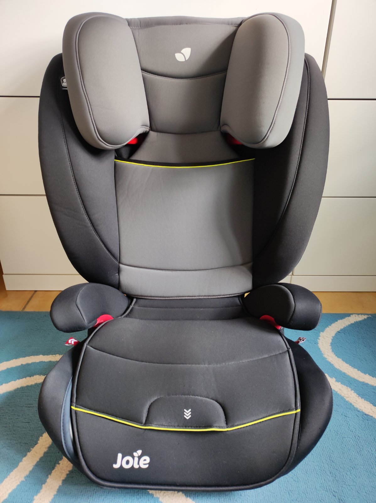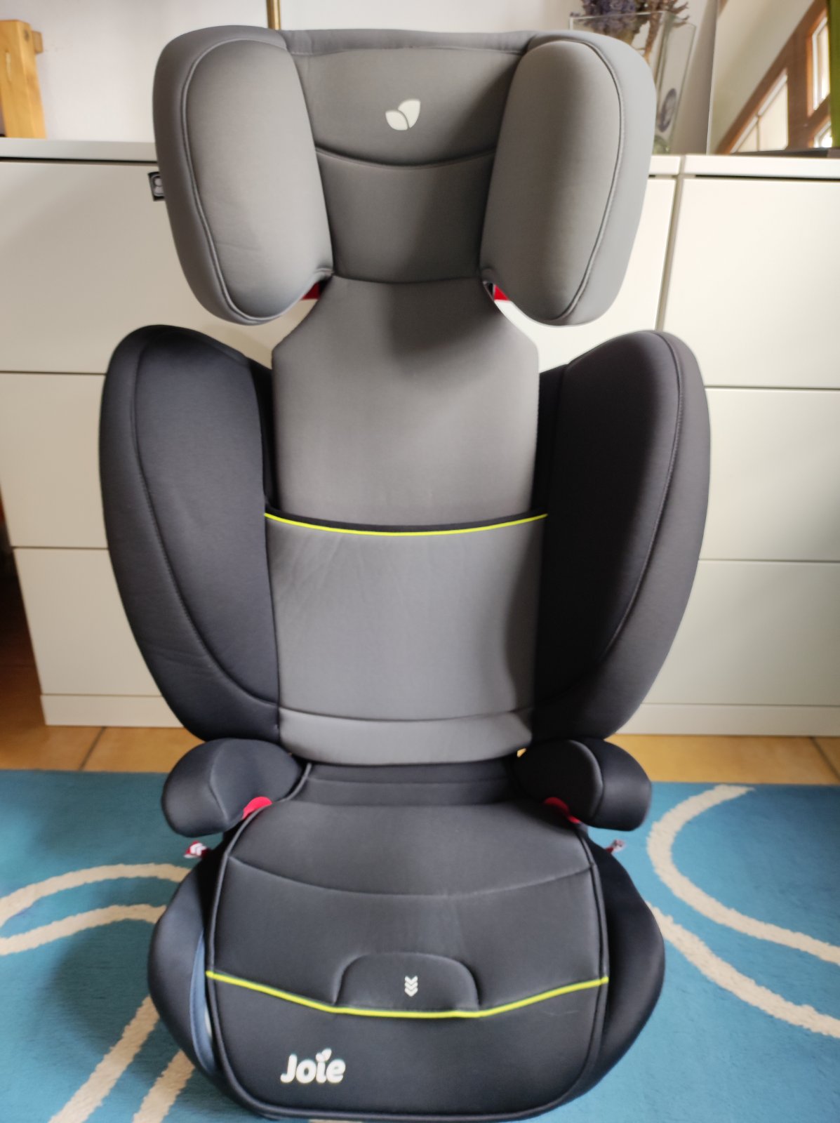 Autosedačka Joei Duallo pro děti ve váhovém období cca 15-36 kg. Docela dlouho roste s dítětem díky výsuvné opěrce hlavy (do různých výšek); má komplexní ochranu proti bočnímu nárazu doplněnou o snadno ovladatelné výklopné prvky; snímatelný a pratelný potah; dá se rozdělit i na sólo podsedák a oporu zad (lze tak nějakou dobu i využívat jen podsedák). Isofix konektory upevní autosedačku na isofix úchyty v automobilu a zajistí ještě lepší bezpečnostní vlastnosti autosedačky.