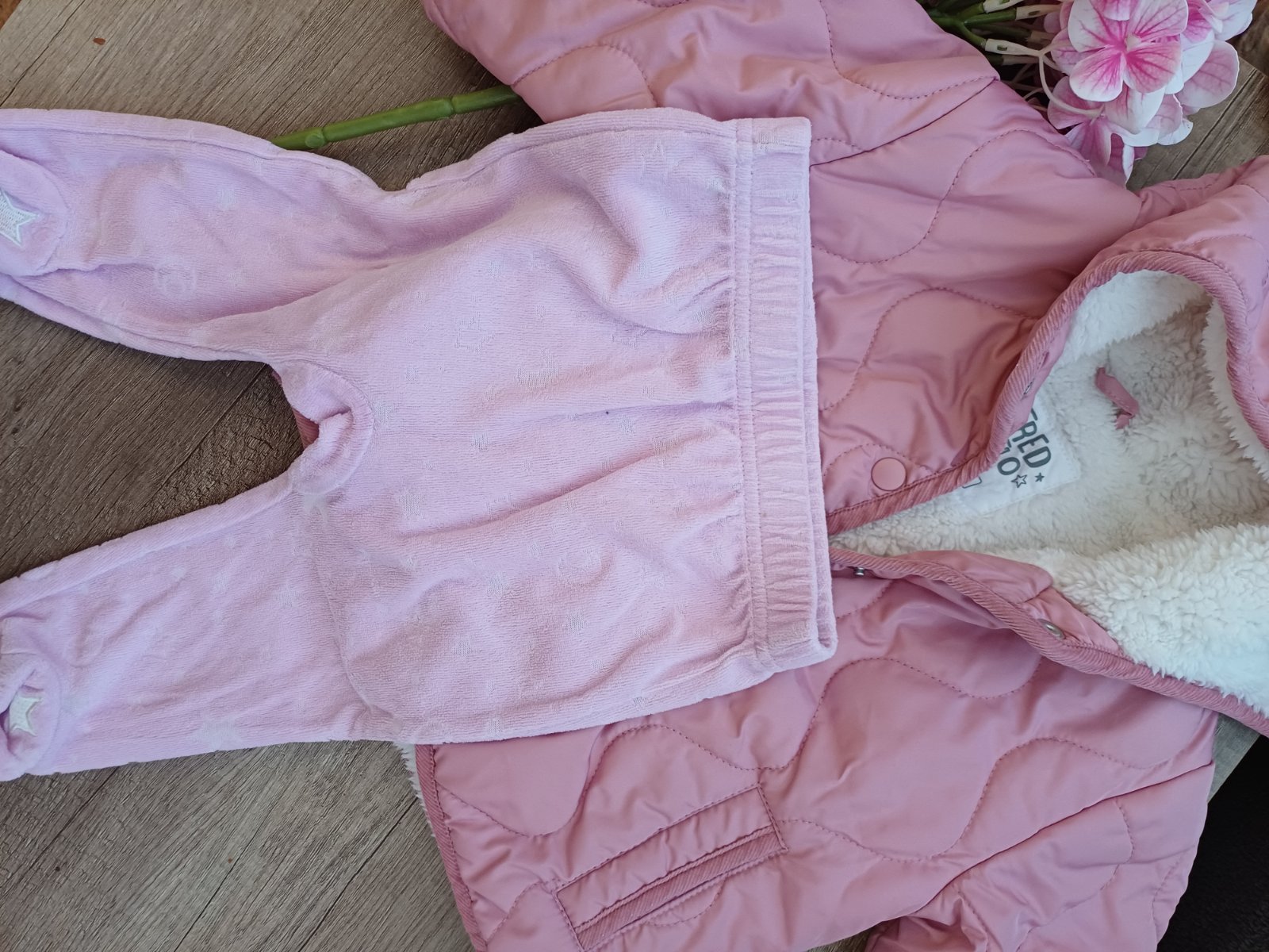 3 saticky - jedny dzinove pak dvoje tensi, dvoje teplaky tensi i teplejsi, troje overalky tensi teplejsi, overal bez rukavu a 5 bodycek bez rukavu🎀 a cepicka celkovo fakt hodne veci a moc pekny ❣️❣️❣️🎀