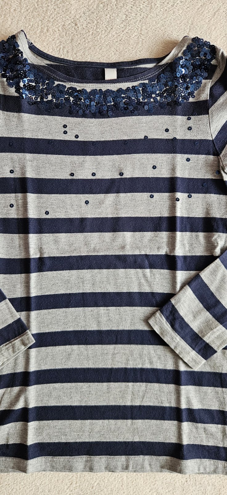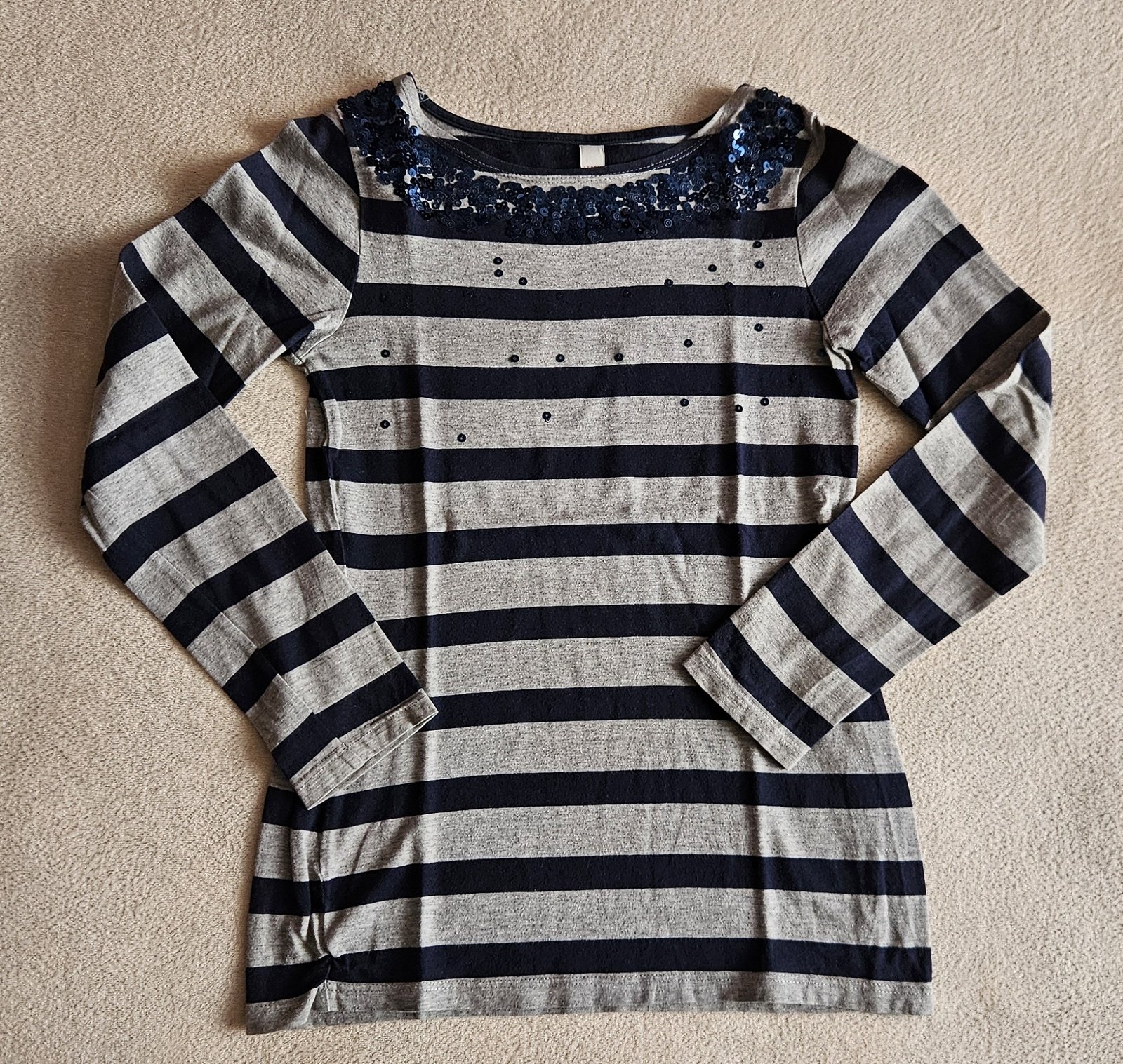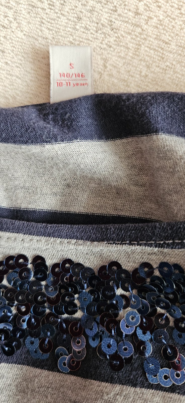 3x dlouhý rukáv, černé s nápisem, vel.134/140, zn.Pageone young, černé Relax, vel.140, šedomodré proužkaté s flitry, ve.140/146, zn.Esprit